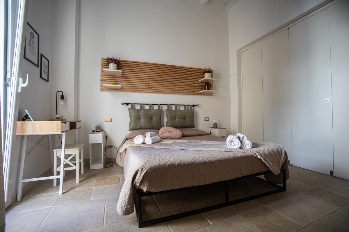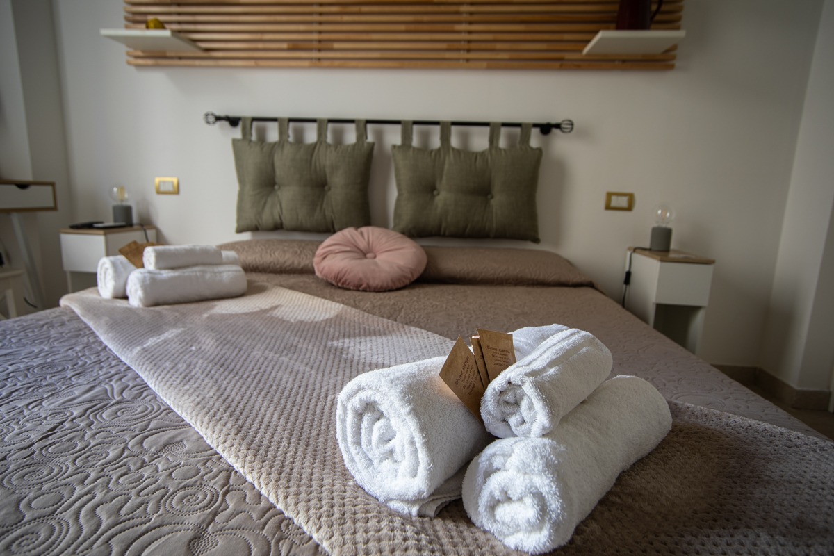 La romantica camera matrimoniale al primo piano e le due camere triple a piano terra e al secondo piano. La soluzione tripla all’ultimo piano del B&B ha accesso al terrazzino per i tuoi momenti di fresca quiete mediterranea.